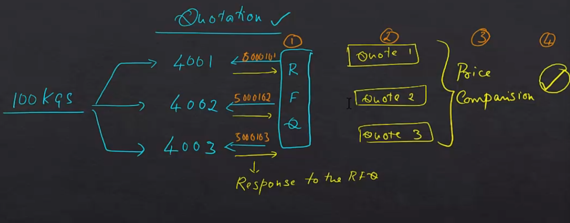 이 모든 절차는 RFQ 프로세스와 공급 소스라는 두 가지 핵심 개념이 긴밀하게 연결되어 있음을 보여줍니다.