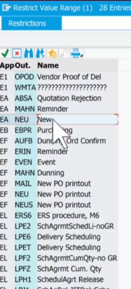 - 메뉴 경로: T-code ME9A (RFQ/Quotation 출력 메시지)