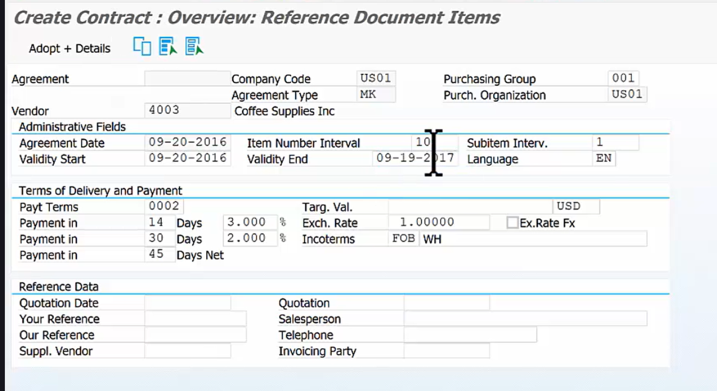 - 활용법: 견적을 장기 계약으로 전환할 수 있습니다. 예를 들어, "앞으로 1년 동안 1,000kg의 커피를 파운드당 8.95달러에 구매하겠다"는 계약을 체결하는 것입니다. 이후 이 계약을 참조하여 개별 구매 주문(PO)을 생성하면, 모든 거래에 계약 가격이 적용됩니다.