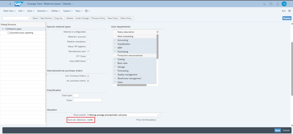 IMG > MM > Valuation and Account Assignment > Account Determination without Wizard > Define Valuation Control