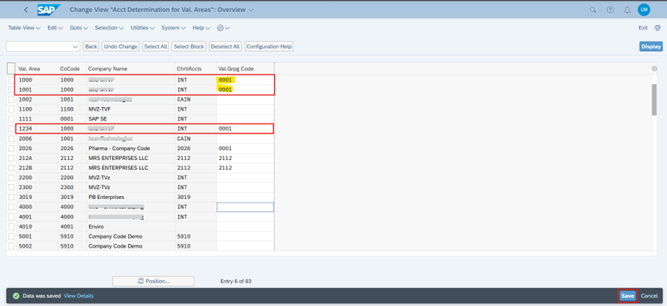 Step 2: Group Valuation Areas (Transaction: OMWM)