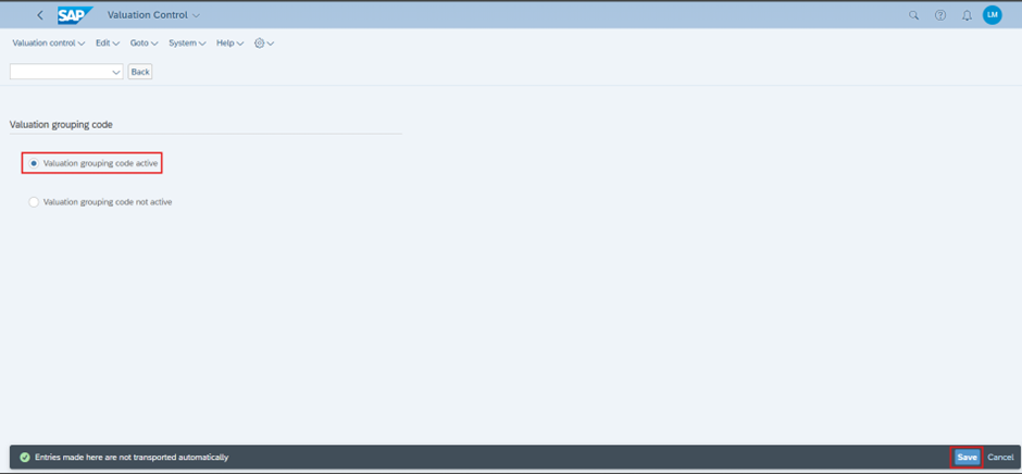 Step 1: Activate Valuation Grouping Code (Transaction: OMWM)