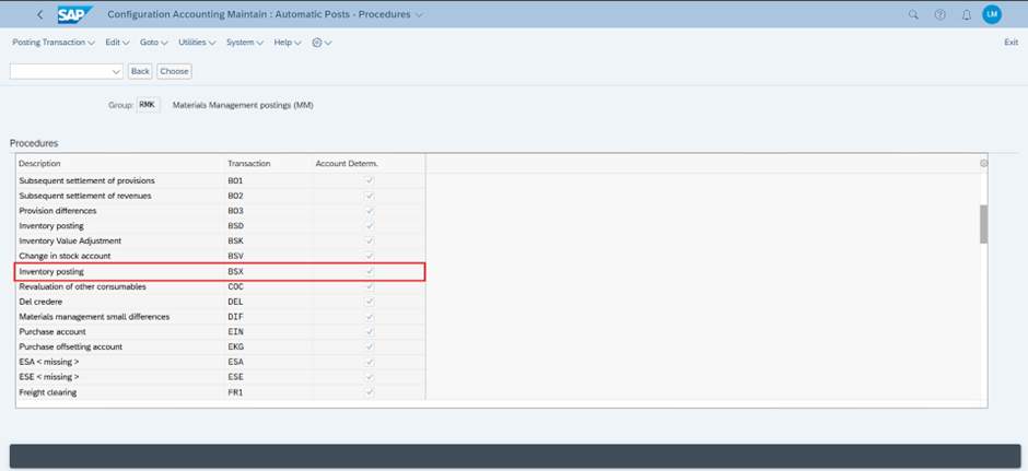PATH: IMG > Material Management > Valuation and account assignment > Account determination > Account determination without wizard > Configure automatic postings