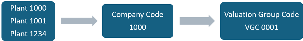 평가 그룹화는 평가 영역(예: 플랜트)을 공통의 평가 그룹화 코드로 묶어 여러 플랜트에서의 계정 결정을 단순화합니다.