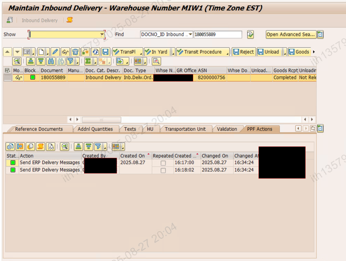 EWM에서 ERP와 동기화가 필요한 액션(자재문서/회계문서 생성 등)이 발생하면, PPF를 통해 ERP에 전달된다